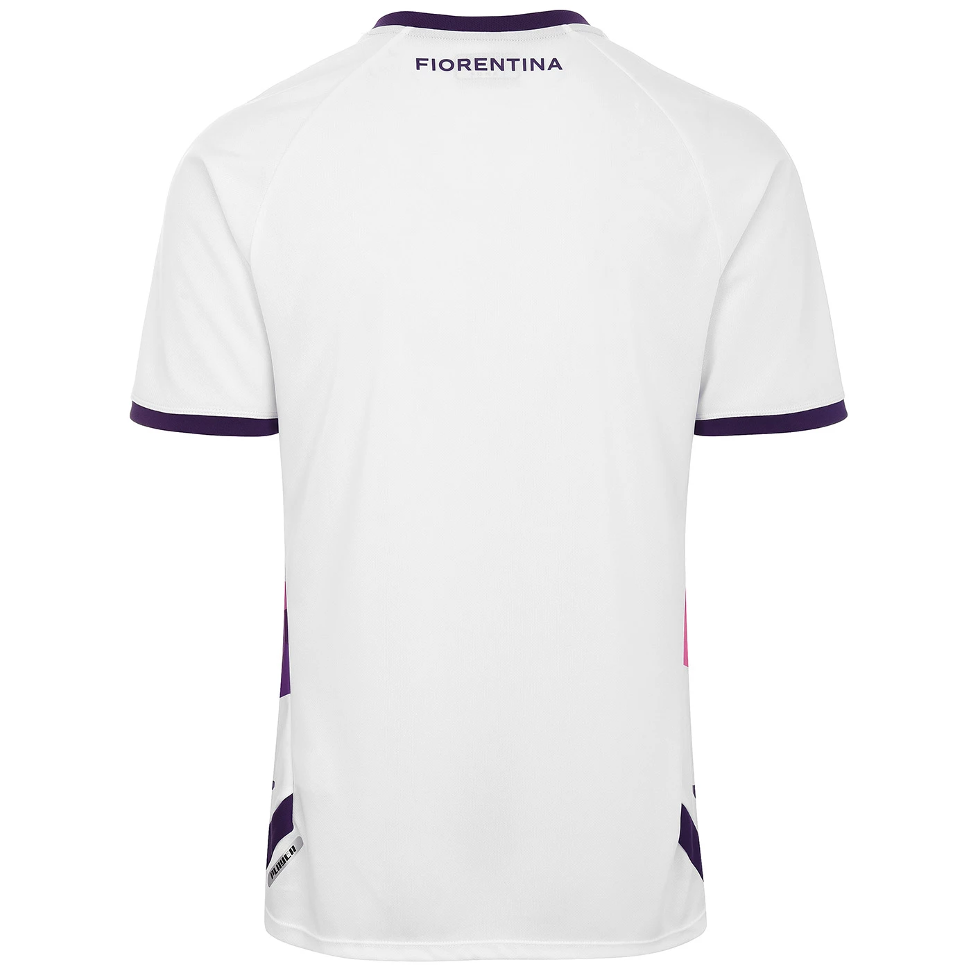 GARA. Pre-gara shirt for man in piquè fabric and with HYDRO-WAY PROTECTION technology. SLIM FIT. Short sleeve, round neck, inserts on sides and on bottom sleeves and sublimation print on front. Omini logo on chest, on sides applied with heat transfer, lettering and sponsor applied in heat transfer and Team logo patch in 3D transfer. ACF FIORENTINA.