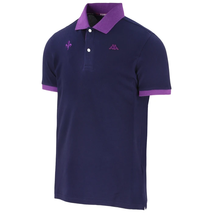 Men’s short-sleeve, slim fit polo shirt. Made of cotton piqué fabric, featuring a ribbed collar and sleeve cuffs in contrasting color. Kappa logo and official ACF Fiorentina crest embroidered on the chest.