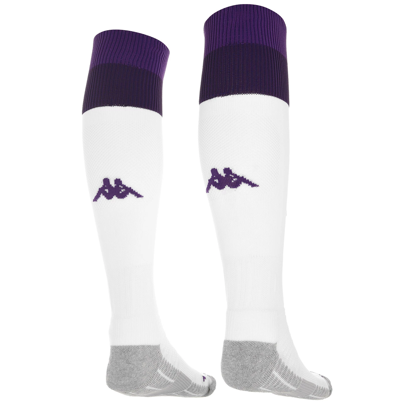 GARA. Official game socks KOMBAT™ in polyamide stretch fiber. Foot with sponge for maximum cushioning, aeration area on the instep, back part on calf in jacquard, anatomical line specific for left and right foot and stripe in contrast color. 1 pair packaging. Omini Logo on back in jacquard and logo team in jacquard on front. ACF FIORENTINA.