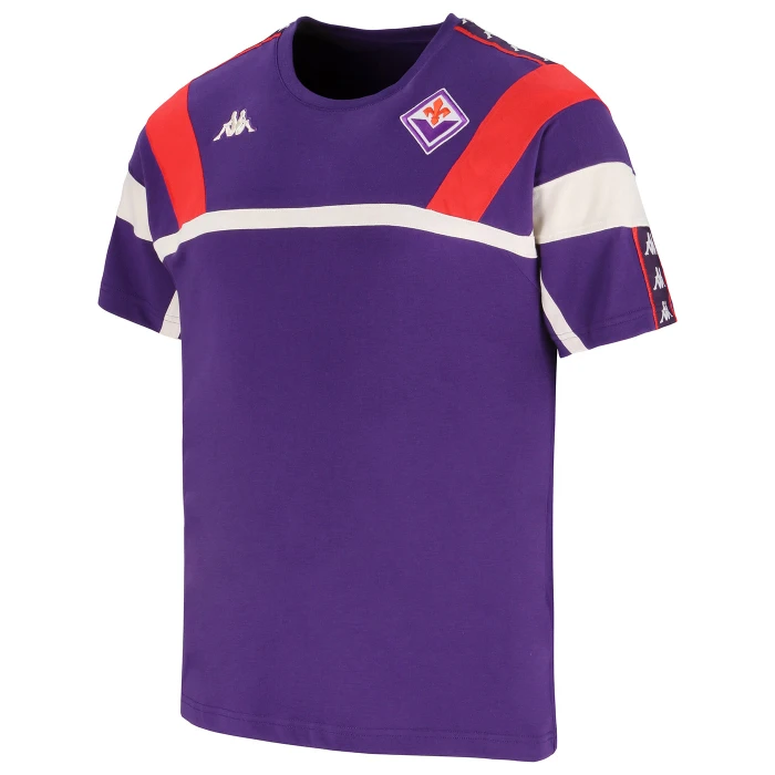 Crew-neck T-shirt made of 100% cotton jersey, combining comfort with sporty style. Designed in a regular fit, it features an iconic look with contrast details on the shoulders and sleeves. The Fiorentina crest and Kappa logo complete the design, making it perfect both for leisurewear and for showing support to the team.