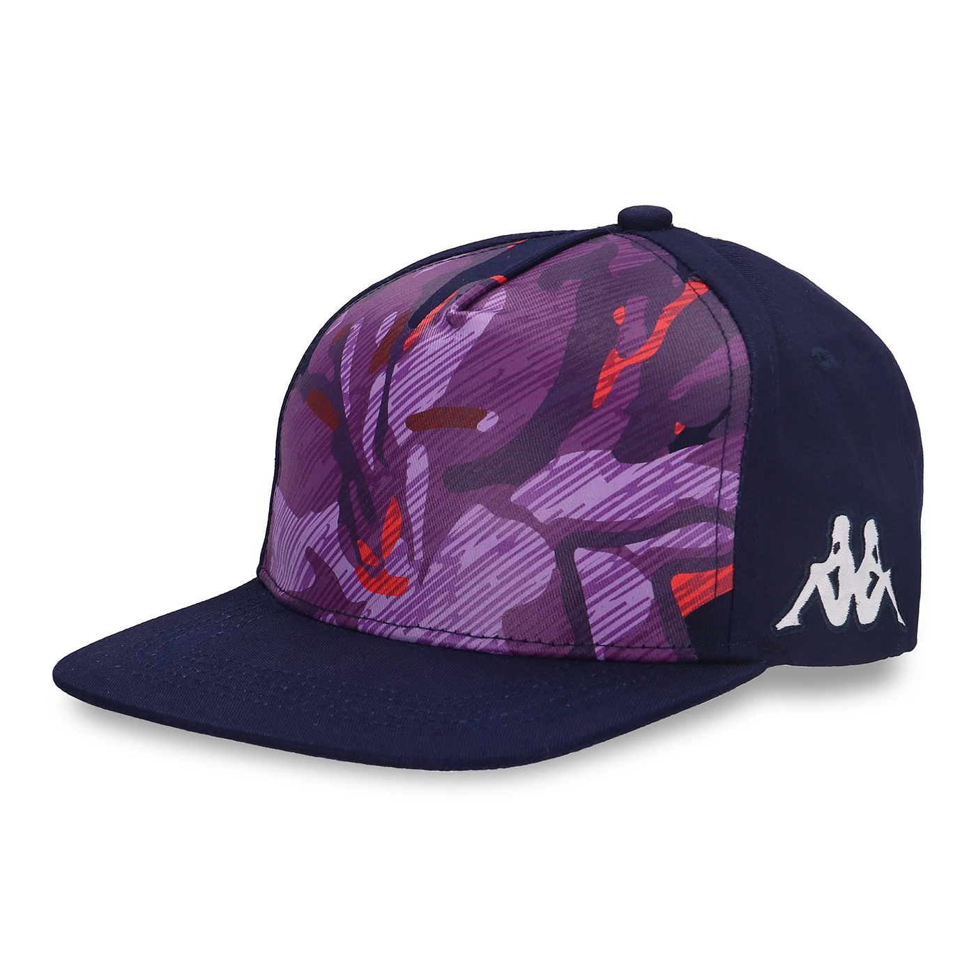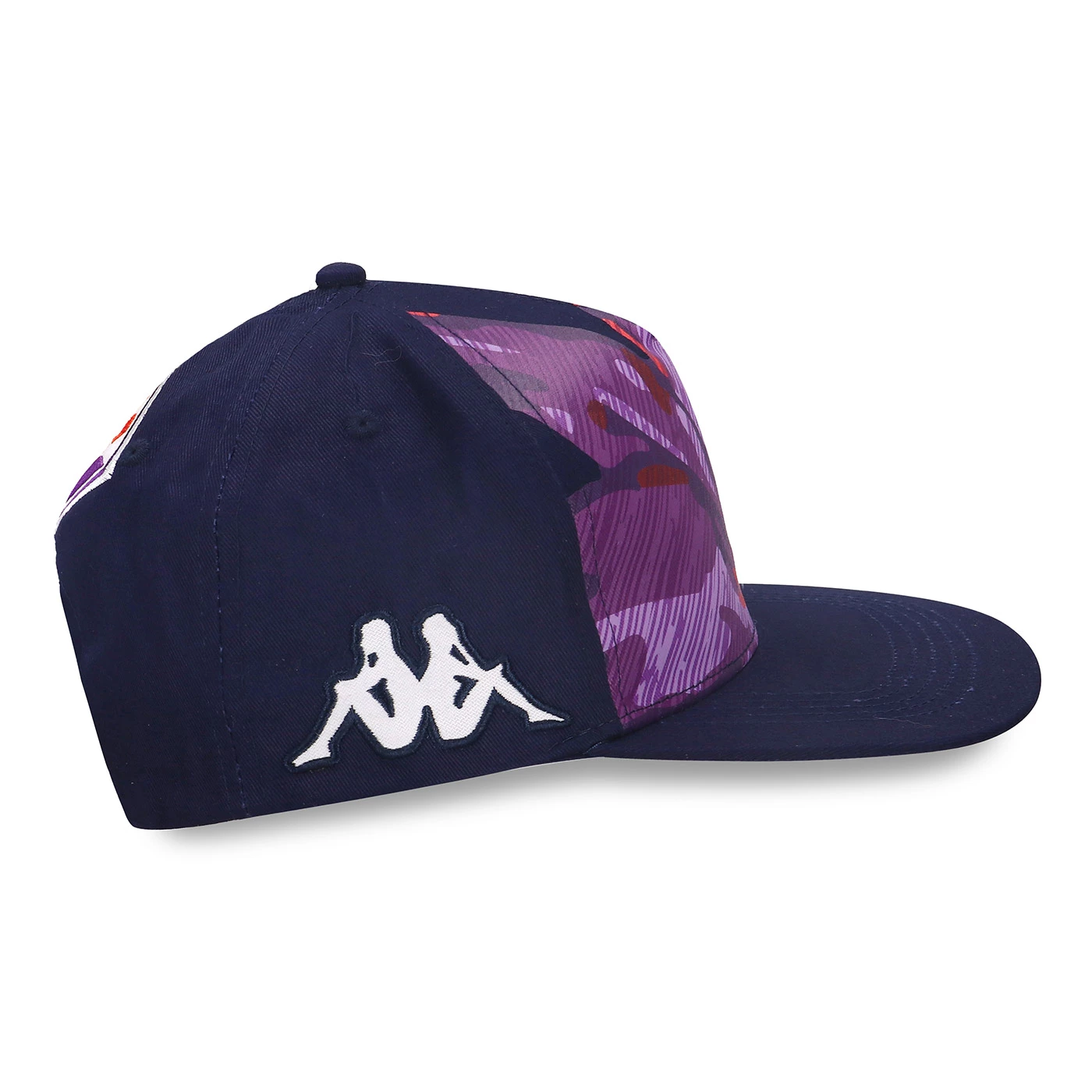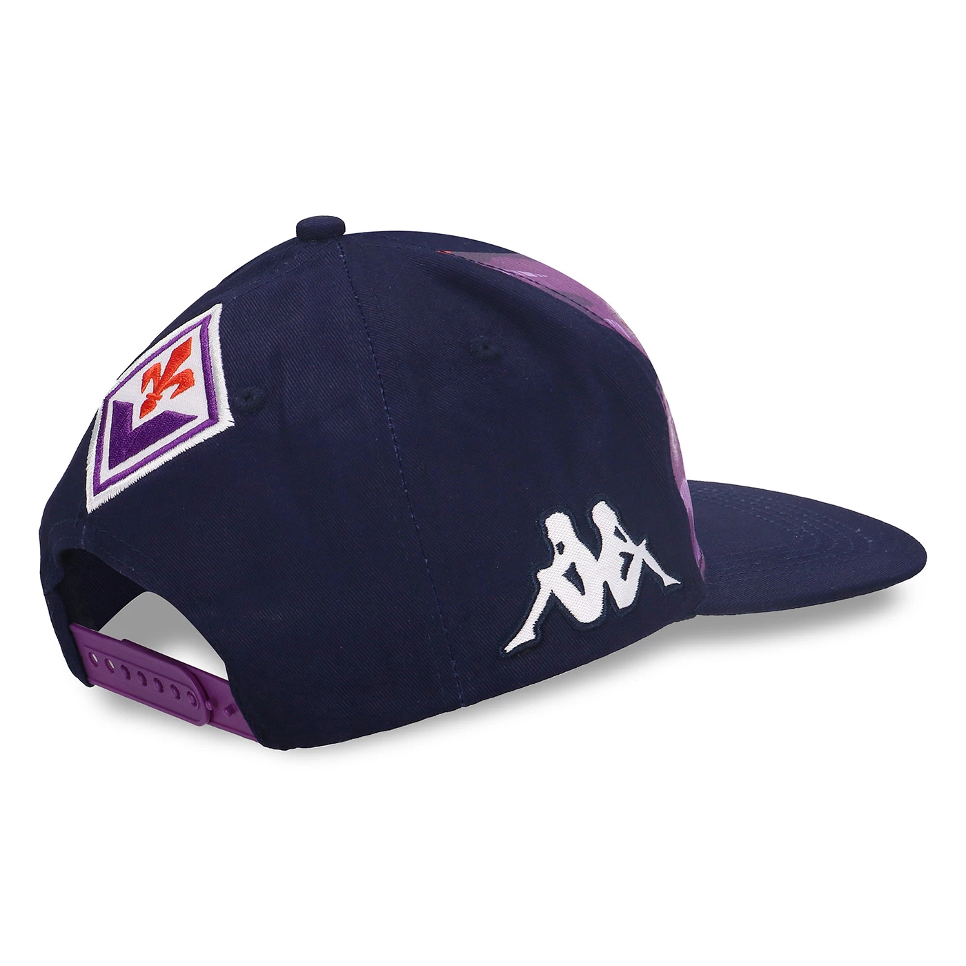 GARA. Cappellino con visiera piatta in tessuto twill. Chiusura dietro in plastica, pannello frontale con grafica stampata. Omini ricamati e logo Team ingabardina. ACF FIORENTINA.