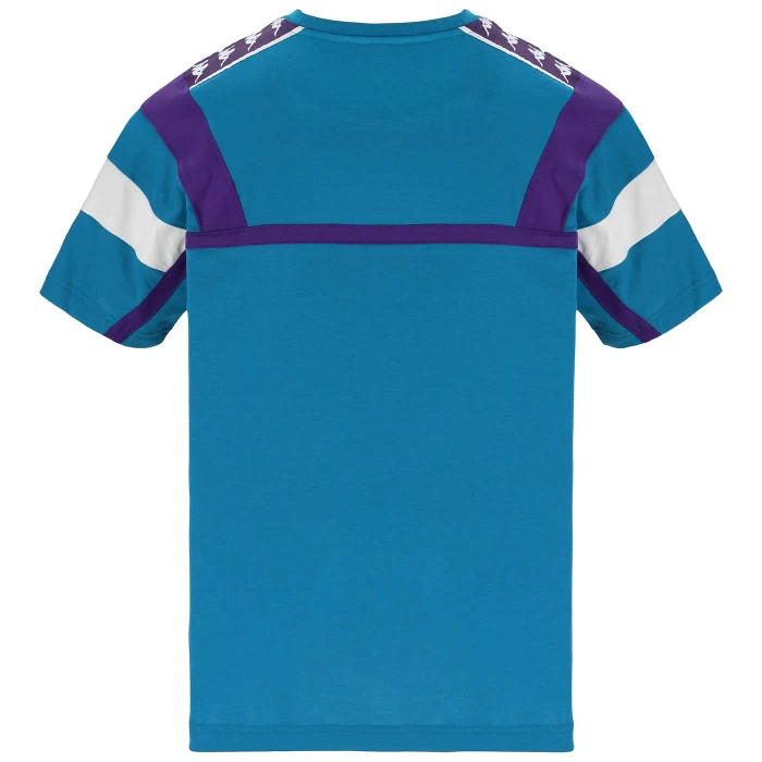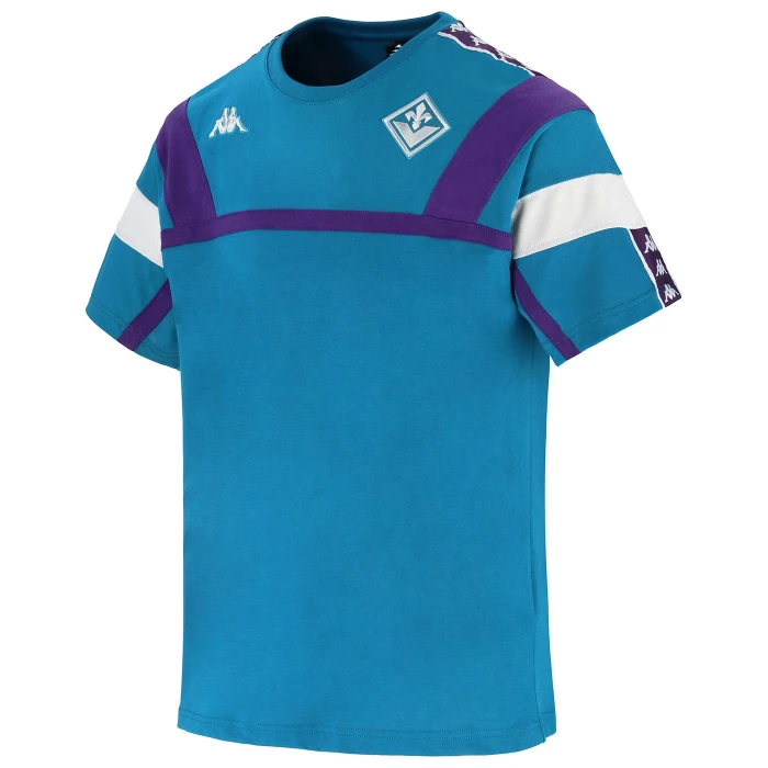 Crew-neck T-shirt made of 100% cotton jersey, combining comfort with sporty style. Designed in a regular fit, it features an iconic look with contrast details on the shoulders and sleeves. The Fiorentina crest and Kappa logo complete the design, making it perfect both for leisurewear and for showing support to the team.