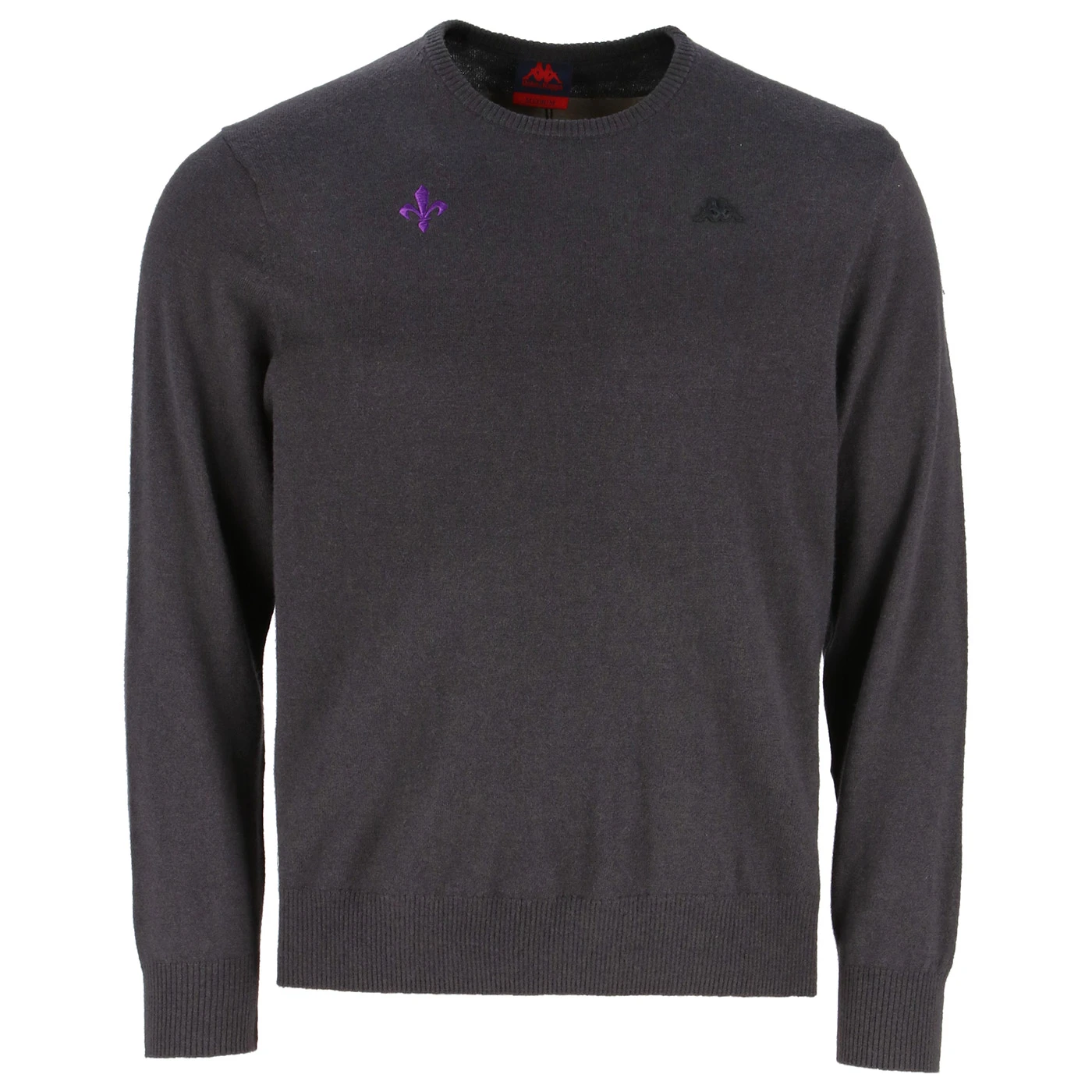 Lambswool and polyamide blend pullover. Classic fit with ribbed trims and double seed-stitch knit elbow patches. Kappa logo and official ACF Fiorentina crest embroidered on the chest.