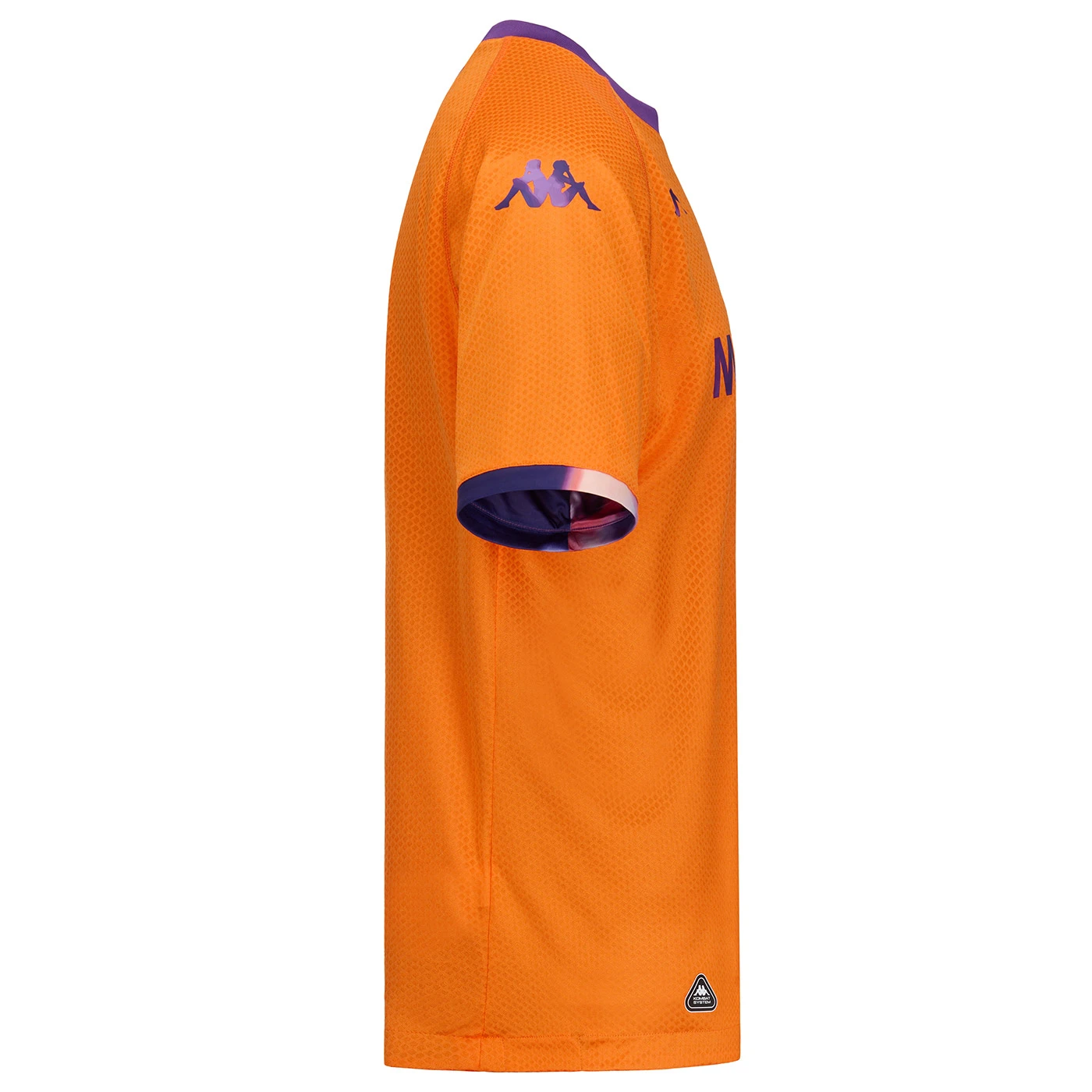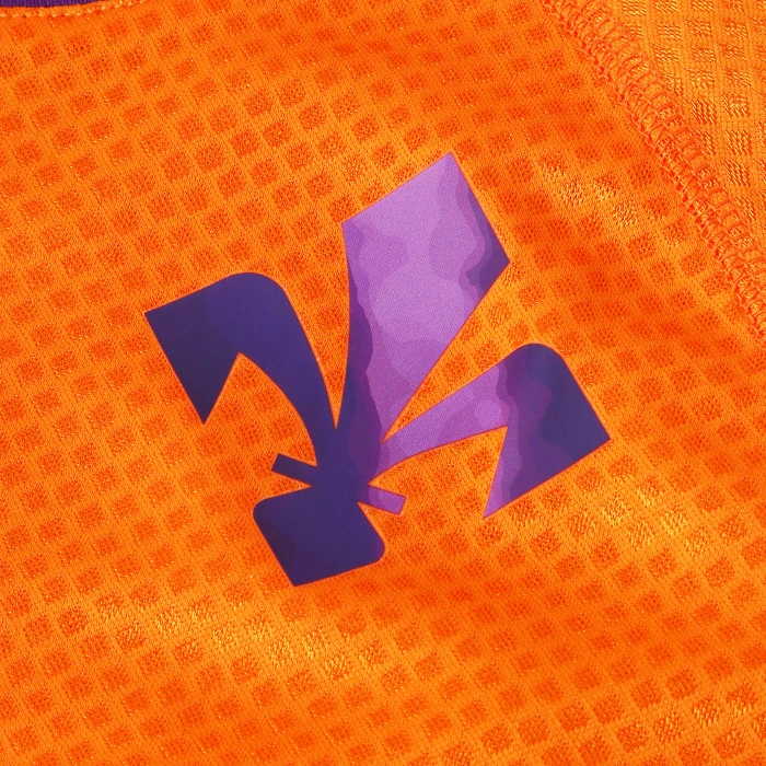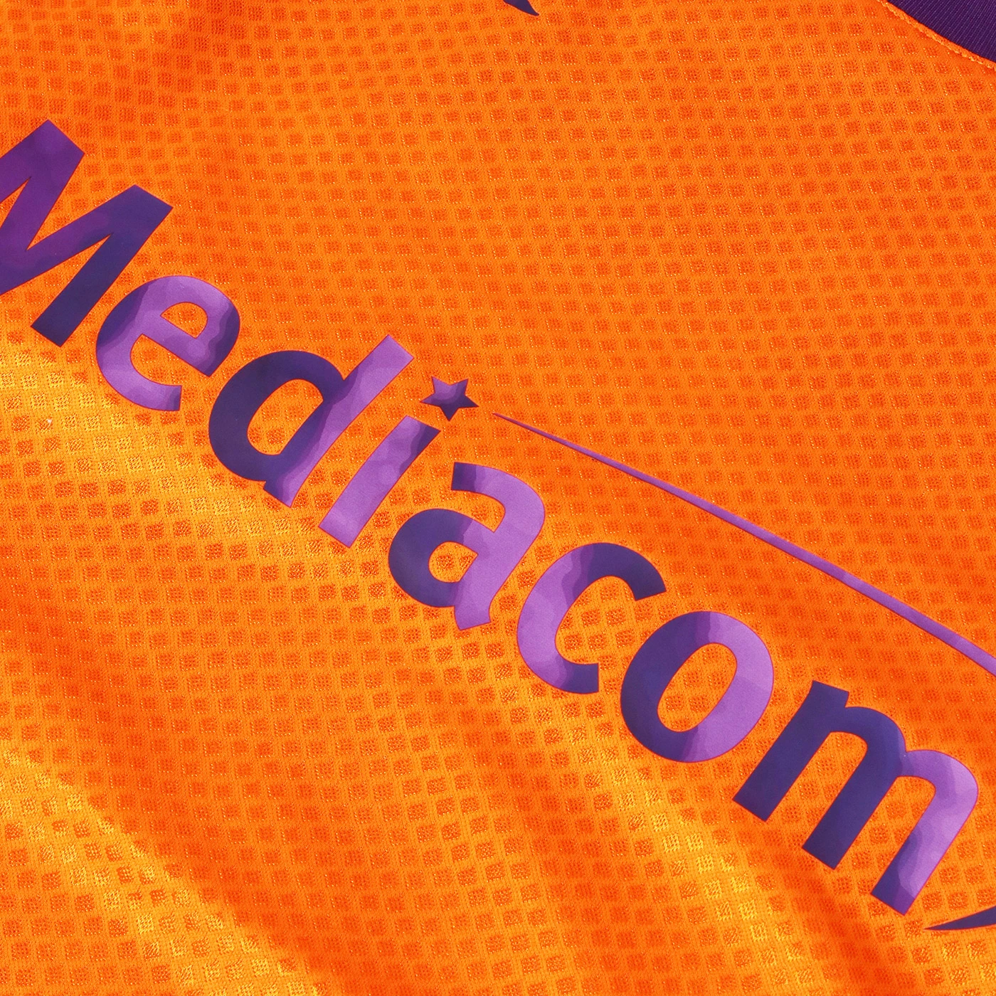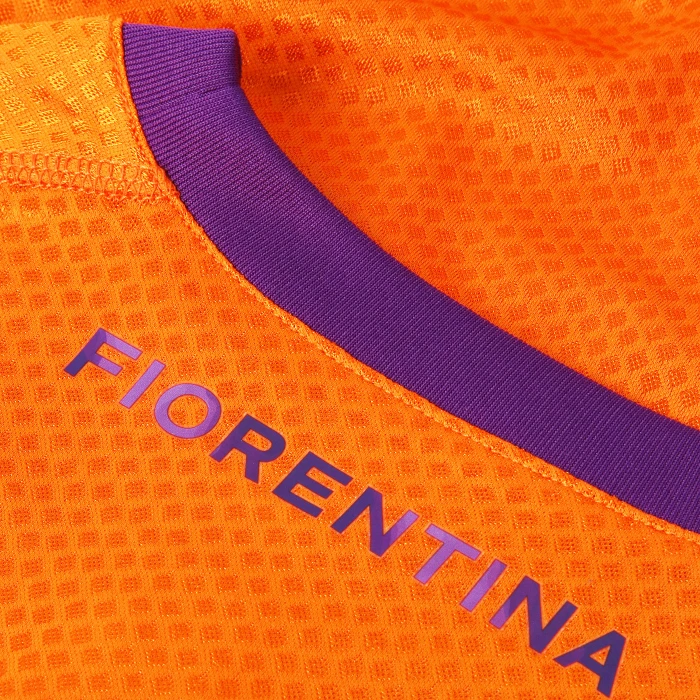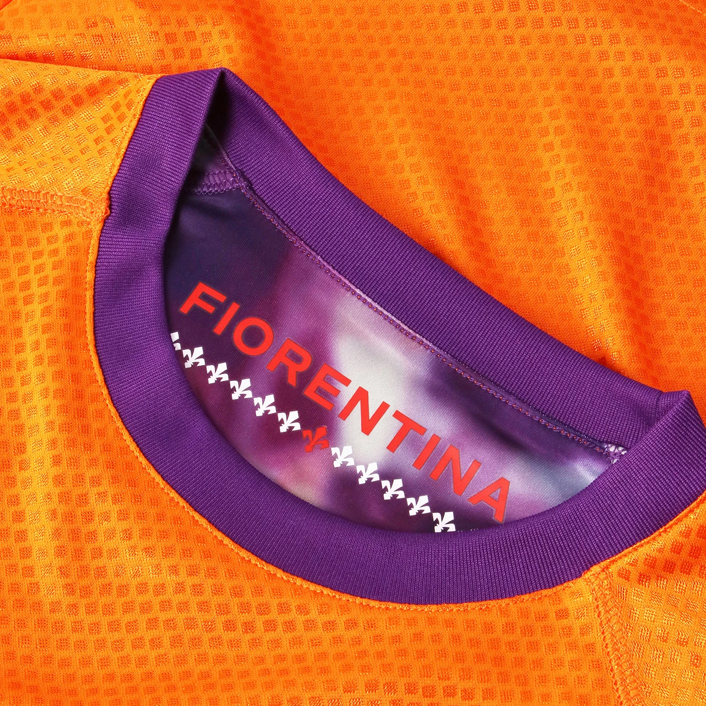 OUTER SIDE: Heat-applied transfer Kappa logo on the chest and sleeves, official ACF Fiorentina crest and back-neck lettering in heat-applied transfer.