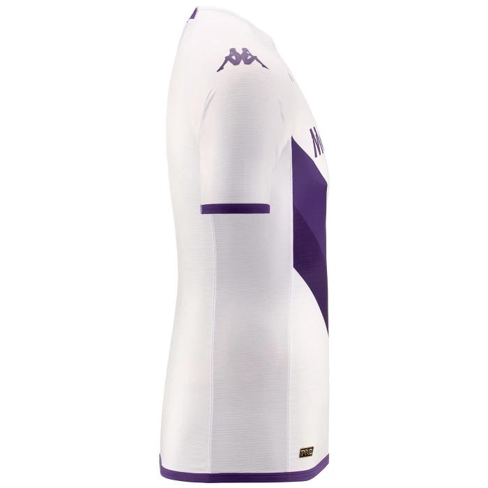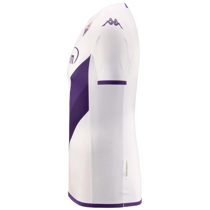 Fiorentina's second official jersey for the 2022/2023 season. \x0d\x0aThe white-dominant Away kit features the large V of I Viola, a brand new element introduced in the Club's new crest as a tribute to the color and community, which by definition identifies and characterizes Fiorentina around the world. \x0d\x0aThe Kappa® Kombat™ Pro 2023 is further refined in its ultralight fabrics and stretch Nylon seams to ensure maximum comfort and stretch. Hydroway Protection Technology ensures high breathability and effective release of body heat. Every detail and customization element is designed to nullify chafing on the skin.\x0d\x0a